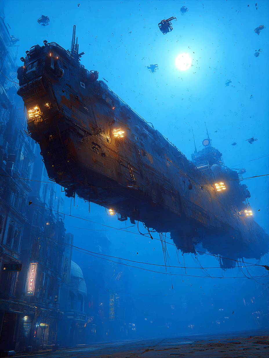 A massive derelict spaceship floats silently within a high-orbit scrapyard above a shattered moon. Jagged debris drifts slowly through the frame, catching streaks of harsh backlight from a nearby sun. The ship's surface is scarred and rusted, with exposed cables and glowing fragments of broken hull. Drones and cargo arms suspended on tethers scan the wreck in silence. The camera captures the entire scene in a wide, slow-tilt cinematic view—staring down at the ghostly remnants of lost technology in a forgotten corner of space. in a apocalyptic, otherworldly style, viewed from a bird's eye view shot, wide shot, shot on red komodo 6k with canon rf 15-35mm f/2.8l is usm lens, torchlight lighting, at twilight, with a dark and moody, sci-fi vibe, accented by atmospheric light, dramatic shadows, dust particles in light beams, featuring limited palette, cyan, orangered, deep space colors, with cracked, weathered stone, worn metal, subtle reflection, faint glow, subtle glow effects --v 7 --ar 3:4 --c 20 --weird 100 --s 850 --sref https://dhzkdndgolte1.cloudfront.net/eyJidWNrZXQiOiJtcG0tcHJvZHVjdGlvbi0yMDI1Iiwia2V5IjoicHJvbXB0cy9wNTY4d25qaDV2cDF4cWMvaW1hZ2VzLzE3NTgyMDQ5MTk0NjAtOS0xOC0yNS1tb3RoLnBuZyIsImVkaXRzIjp7InJlc2l6ZSI6eyJ3aWR0aCI6ODAwLCJoZWlnaHQiOjYwMCwiZml0IjoiaW5zaWRlIn0sInF1YWxpdHkiOjg1fX0= --sw 500